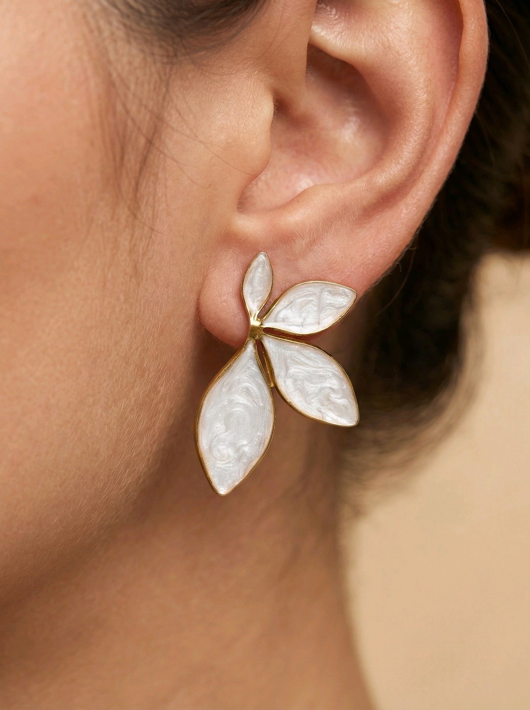 Boucles d’oreilles petite feuille – Nacré