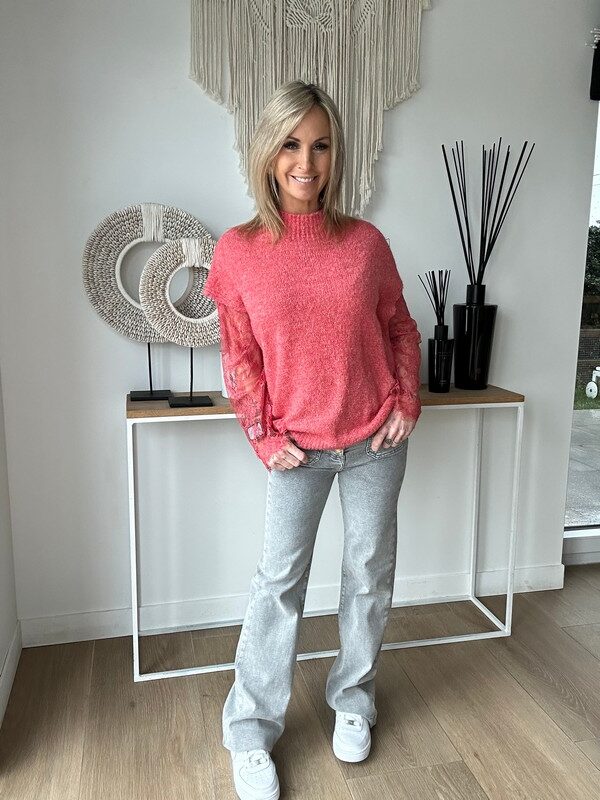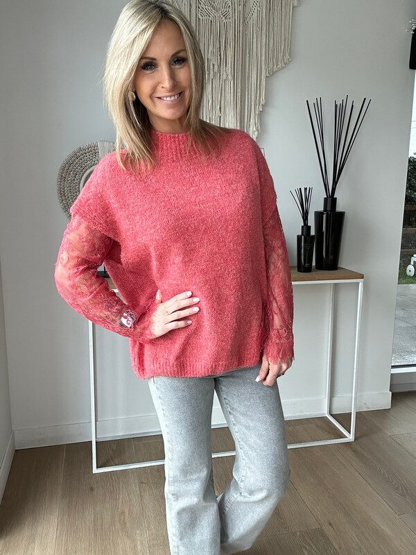 Pull manche dentelle – Corail