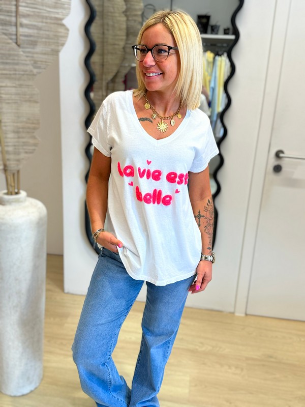 T-shirt La vie est belle – Rose fluo